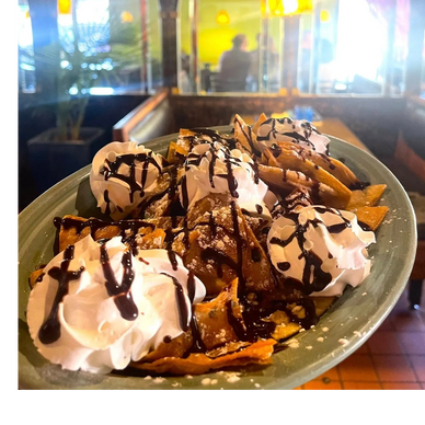 "Dessert Chips" Covered in our homemade syrup, powdered cinnamon & sugar, whip cream, & Chocolate... $7.95